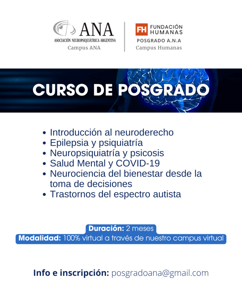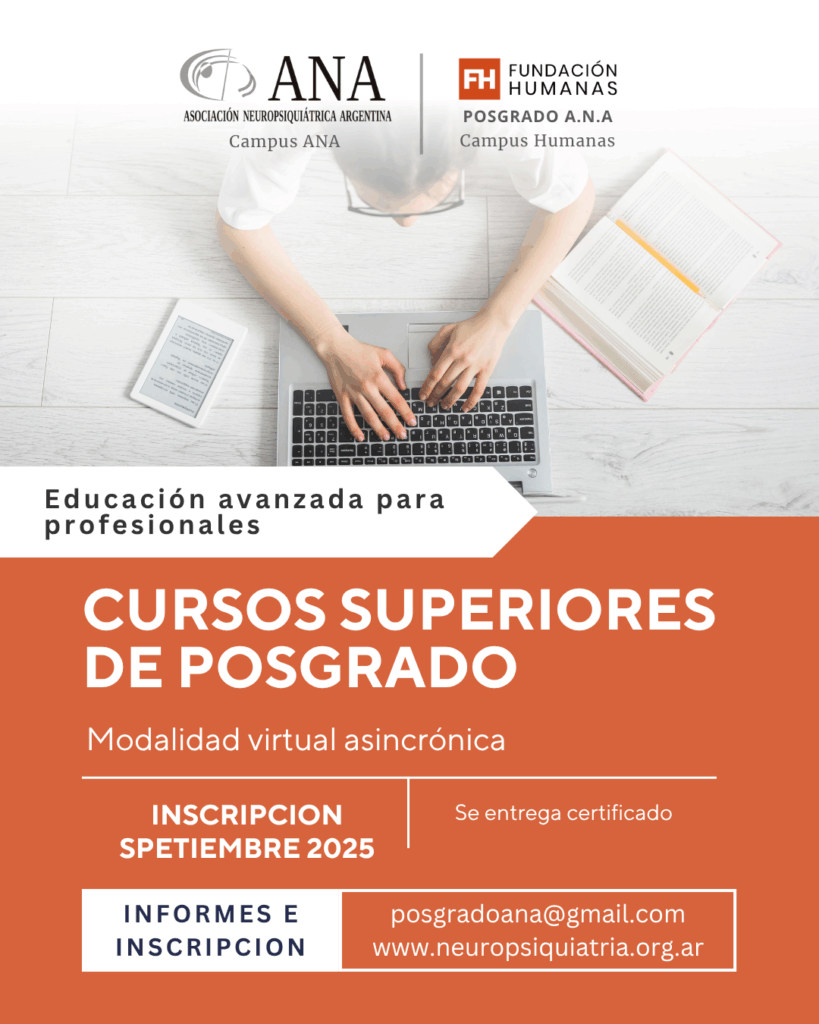 Nuestra oferta de cursos asincrónicos de posgrado en neuropsiquiatría, psicología y salud mental está diseñada para profesionales que buscan formación avanzada a distancia. Con acceso flexible y materiales de alta calidad disponibles en nuestra plataforma virtual (CAMPUS ANA), puede aprender a su propio ritmo y adaptarse a su propio horario. Desde conceptos fundamentales hasta áreas especializadas, nuestros programas están diseñados para satisfacer las necesidades de desarrollo profesional de los expertos en estos campos.