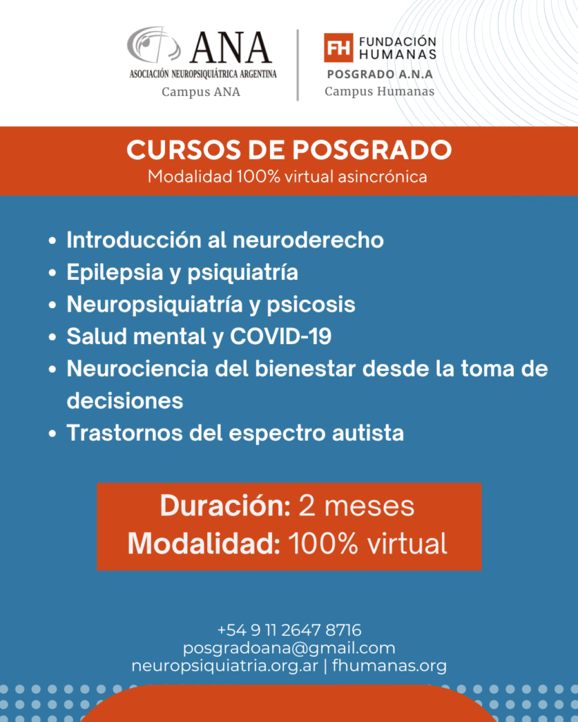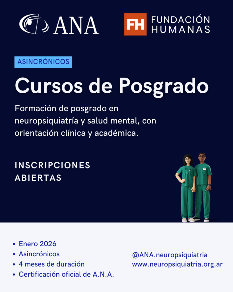 La Asociación Neuropsiquiátrica Argentina (A.N.A.) se distingue por su oferta educativa especializada en cursos de posgrado en neuropsiquiatría y neurociencias, diseñados para satisfacer las necesidades de formación avanzada de profesionales en estos campos. Con una diversidad de programas que incluyen Cursos Superiores de Posgrado, Cursos Superiores, y Fellowships, nuestra institución se posiciona como líder en educación científica de alta calidad.